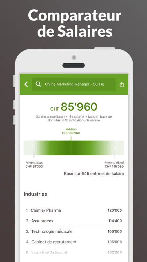 Même pendant vos déplacements, accédez aux plus de 13'000 offres d'emploi provenant de plus de 9’000 entreprises, créez des JobMailer, suivez des employeurs attractifs & offres d’emploi, postulez en un clic et rédigez des évaluations d’entreprises. Avec notre plateforme d’emploi, vous avez tout ce qu’il vous faut pour votre recherche d’emploi !
