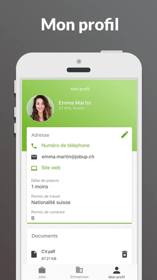 7 – POSTULEZ directement : Postulez via l’application grâce à votre profil jobup.ch ou votre adresse email.