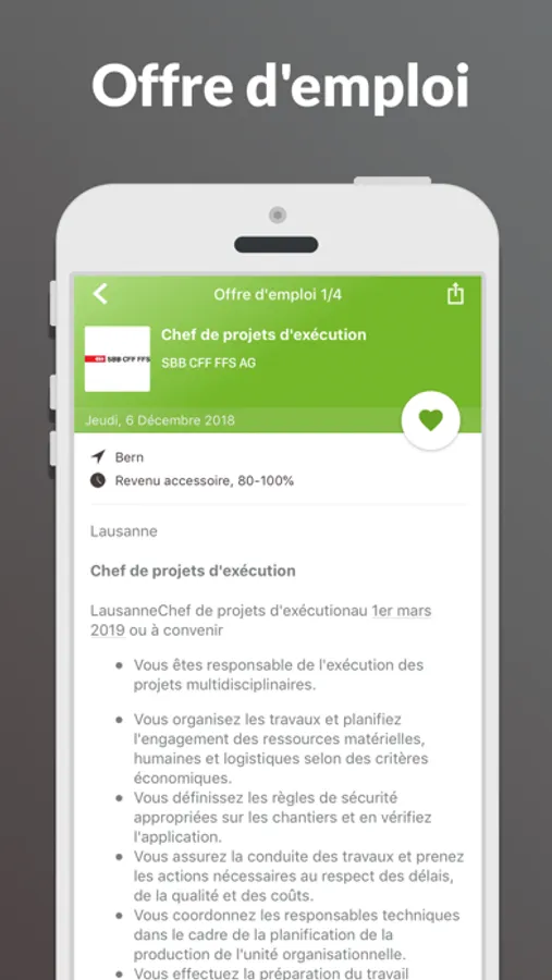 1 – ACCÉDEZ GRATUITEMENT À TOUS LES JOBS de Suisse romande depuis une seule application. jobup.ch, plateforme n°1 de l’emploi en Suisse romande, vous propose le plus grand nombre d’offres d’emploi ainsi qu’un large choix d’entreprises.