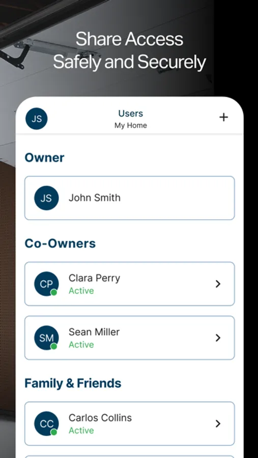 • Set schedules to close your garage doors or gates or to have your lights turn on/off