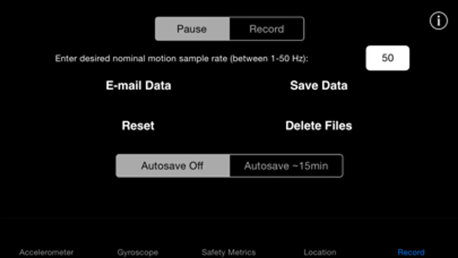 The Small Craft Motion Program (SCraMP) displays the device's accelerometer, gyroscope, and location data. A collection of motion warning indices are implemented for boating operations. Motion data can be recorded at user-selected nominal sample rate; location data is recorded at device-selected sample rate.
