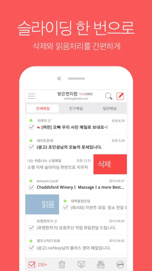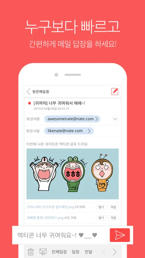 네이트메일 앱에서 사용하는 모든 메일을 받고, 보낼 수 있어요.