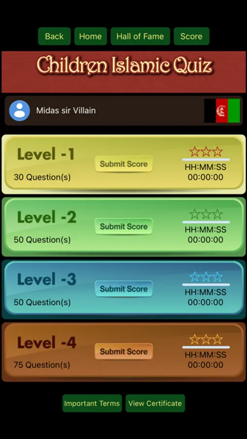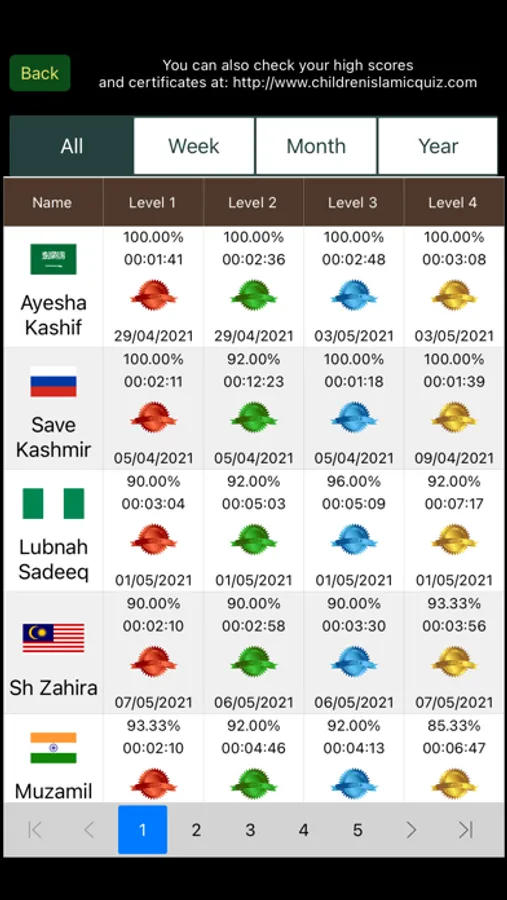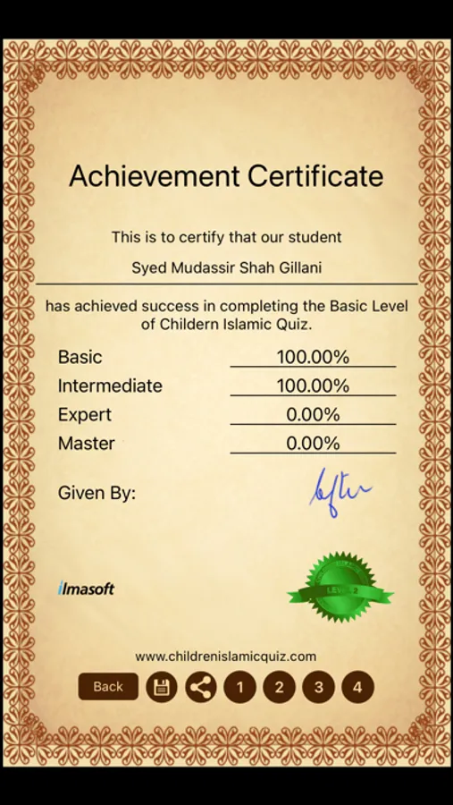These certificates can be submitted to http://www.childrenislamicquiz.com with a simple touch of a button. You can watch your child's progress in the app score sheet or on the website where children from around the world are displaying their scores.