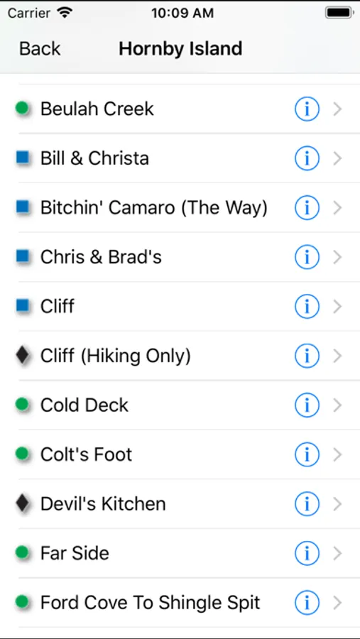 Includes over 40 named trails with descriptions (tap the blue arrow in the "Trail Info" list).