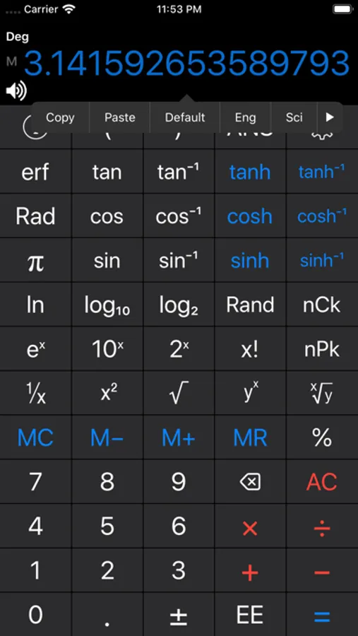 Easy to access the scientific functions by swiping between exponents, logs and sinus functions so all buttons are large and uncluttereds, this allows you to work faster and more reliable (no rotation or "2nd" function keys needed). All the functions are visible on the iPad, but more are revealed by rotating to landscape. Balloon help for easy functionality.