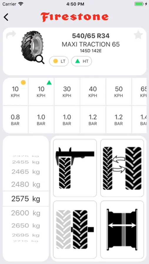A utility application used for calculating tyre pressure in order to obtain optimal safety and efficiency when employing Firestone agricultural tyres.