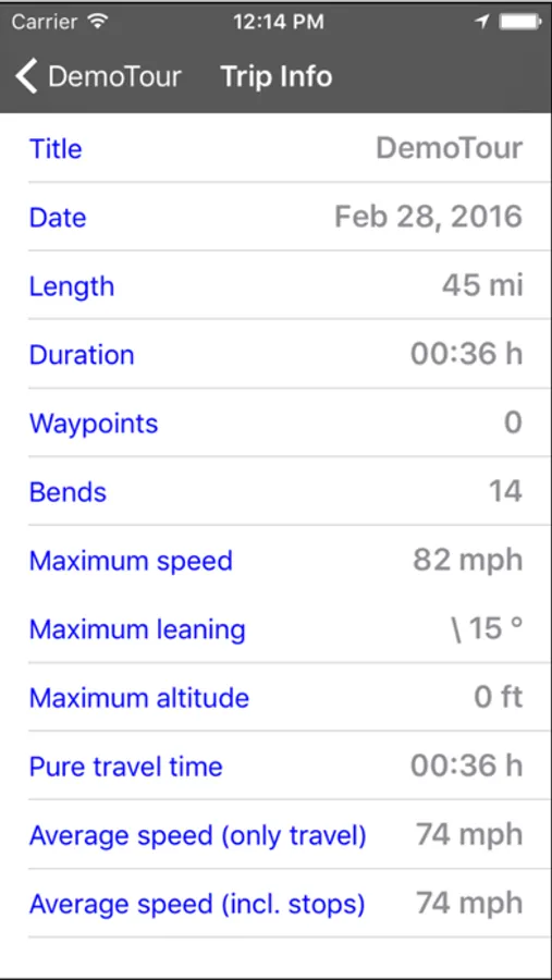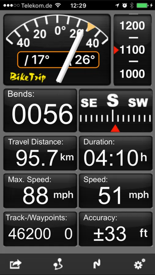 * Direction of travel, speed, travelled distance / time , total ascent, maximum speed / leaning / altitude etc.