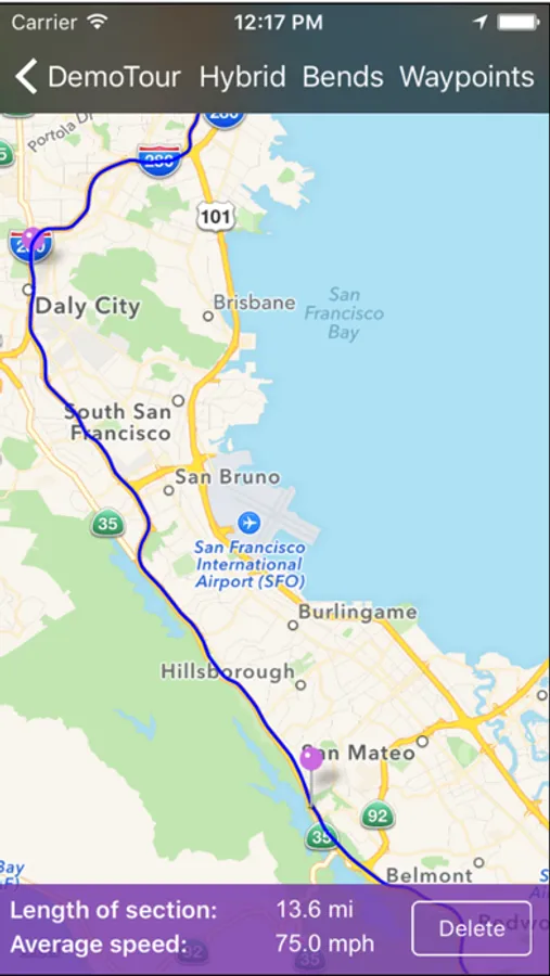 Any point of the trip can be included into the waypoint archive. The coordinates of waypoints can easily be copied and used / pasted in other apps. Waypoints can be sent to another user and easily imported to BikeTrip by him.