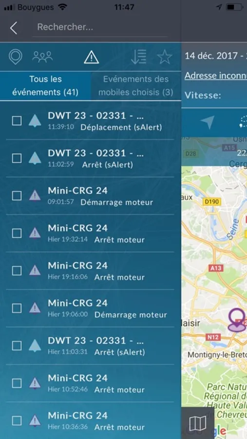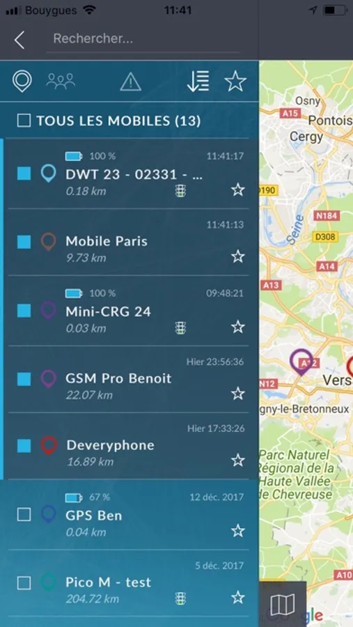 Grâce à DeveryLight, chaque gestionnaire de flotte peut consulter en temps réel la position de ses dispositifs sur une carte à partir de son iPhone ou de son iPad.
