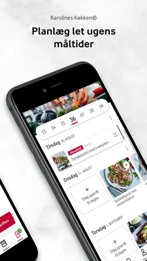 • Min Madplan – få inspiration fra Karolines Køkkens® madplaner eller lav din egen madplan, hvor du nemt kan tilføje favoritopskrifter og egne noter, sådan planen skræddersyes til dine behov.