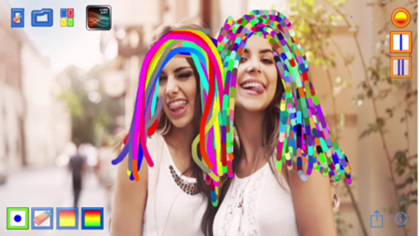 You have ALL THE BUTTONS ON THE SCREEN when you need them. The buttons fly away when you paint, and the buttons will smoothly come back after a while.