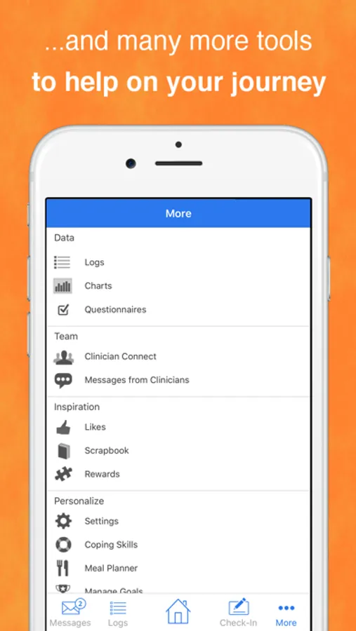 - Customize log questions, meal plans, coping tactics and recovery goals
