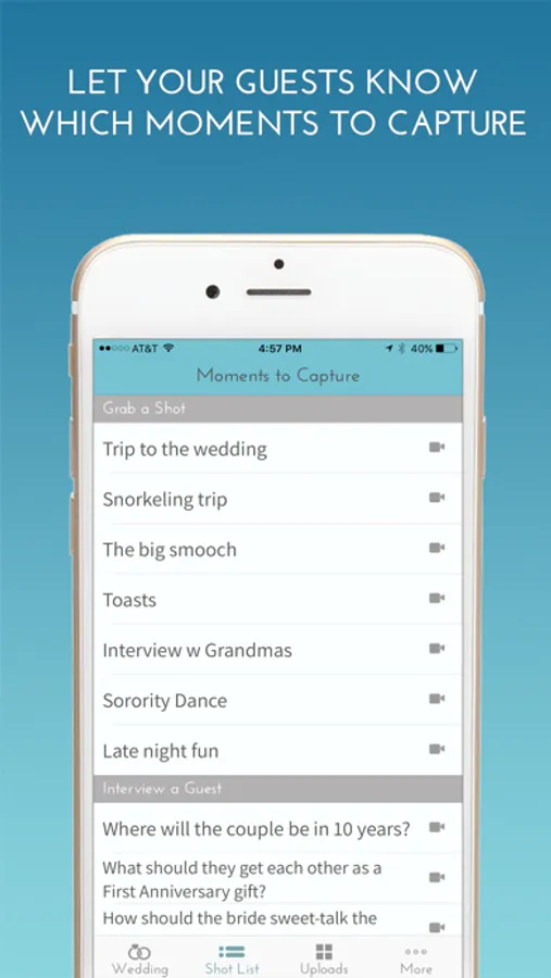 • Friends and family use the free WeddingMix app to send in their fun photos and videos of your wedding.