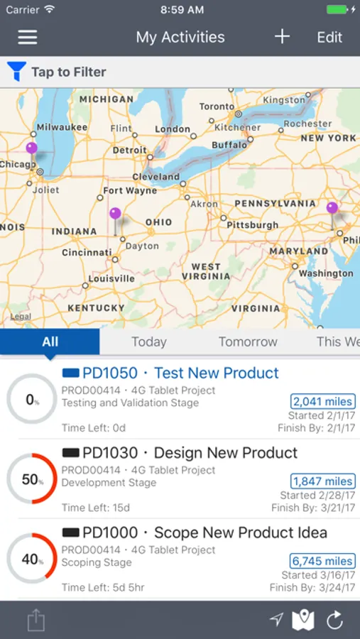 View the activity location in map view and navigate to the job site using the map application on your device.