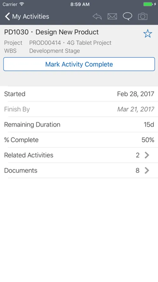 If you already have a current license and connection to Primavera P6, P6 mobile is the perfect companion to P6 web for team members on the go. The simple interface allows for quick status updates and timesheet submittal so a project schedule remains accurate and timely.