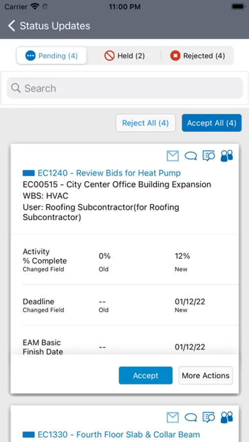 Update activity progress and submit timesheets right from the place where the work is happening.