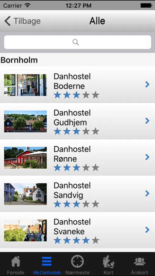 - Hostel beskrivelse med billede og antal stjerner