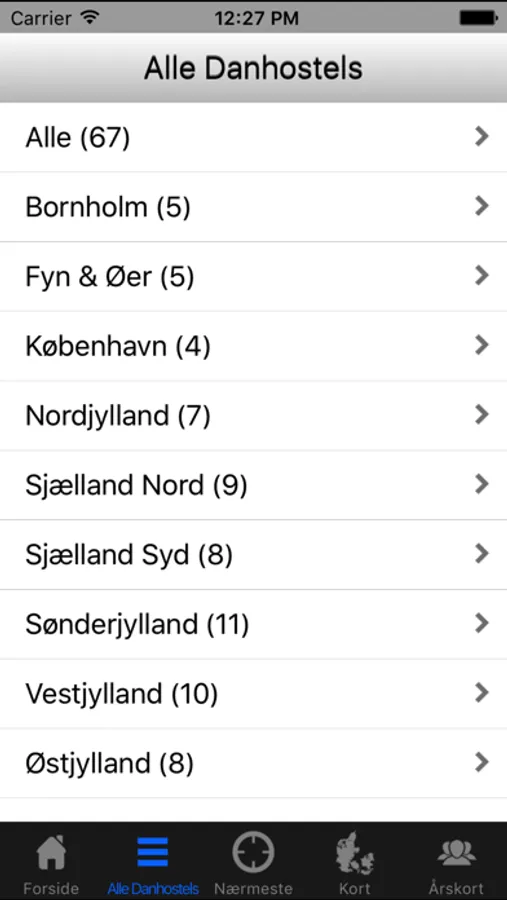 Vis hostels i en region