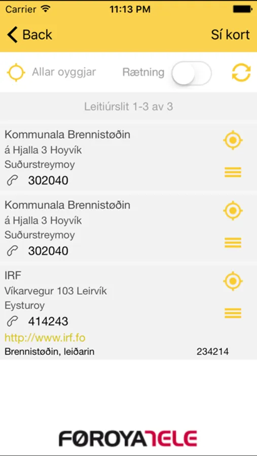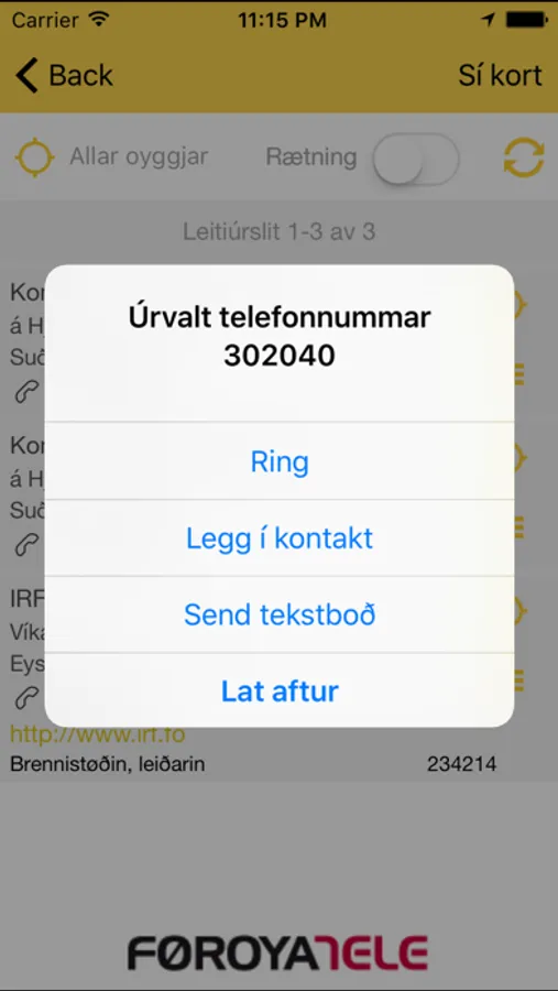 - Frá leitiúrslitinum er møguligt at ringja, goyma og senda tekstboð