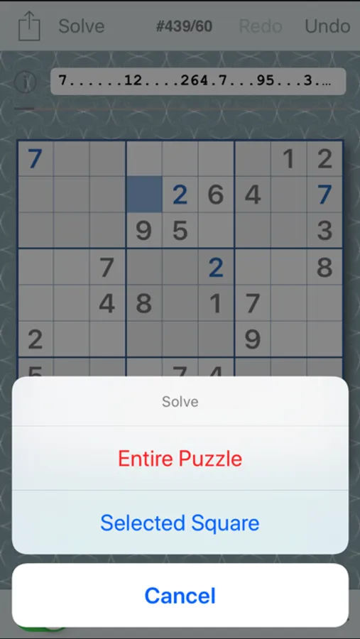 Send an e-mail of a puzzle at any stage to your friends. If partially or fully solved, they'll also get the original puzzle. And, of course, they'll see your score, even a message about your making use of candidates. Recipients may paste the puzzle into their own copy of Smart Sudoku.