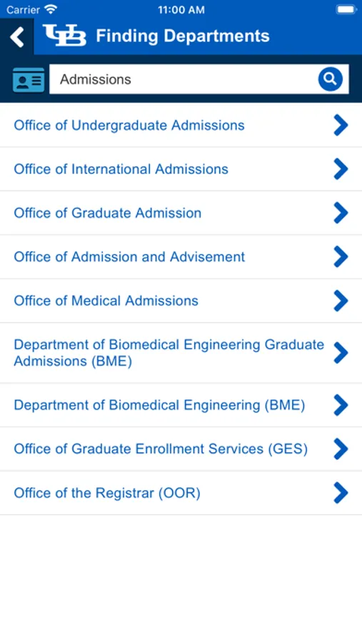 • FIND DEPARTMENTS: Locate specific departments on UB’s three campuses.