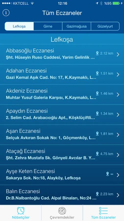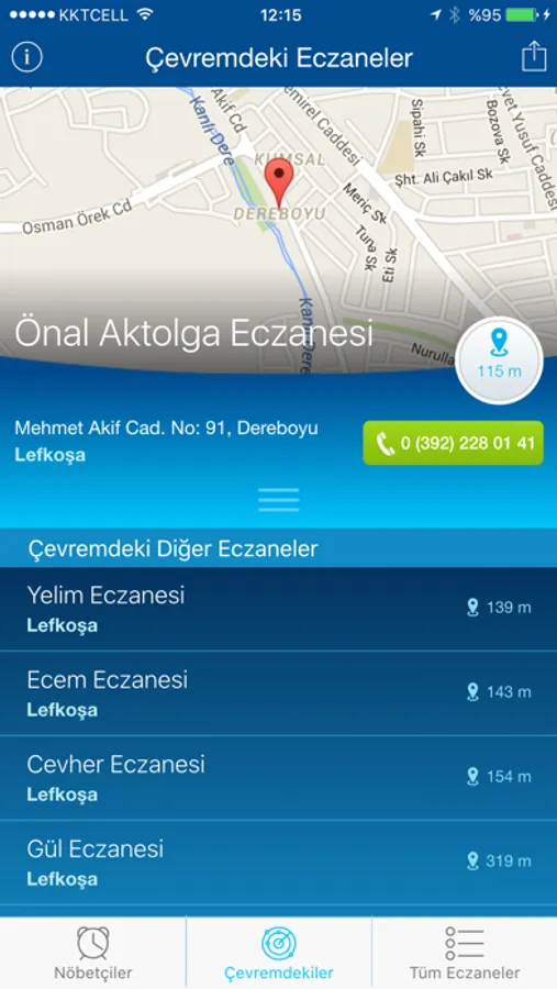 * Kuzey Kıbrıs Turkcell Eczane uygulaması ile bulunduğunuz bölgeye en yakın eczanenin ne kadar mesafede olduğunu görebilirsiniz.*