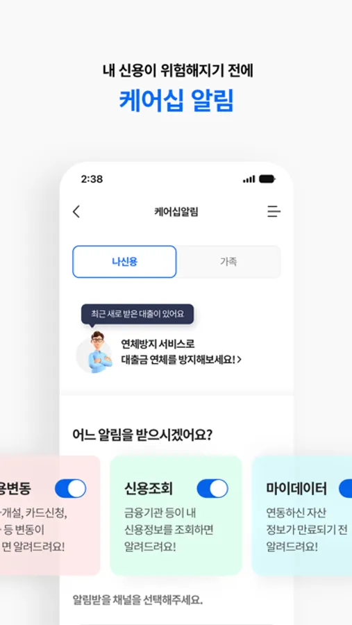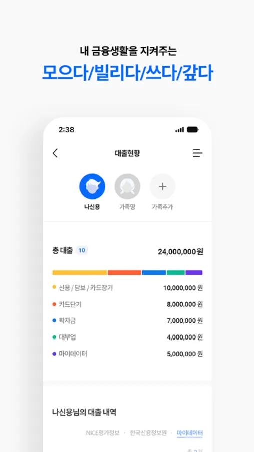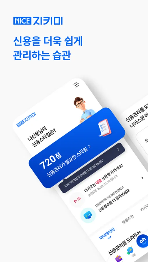 지켜주는 금융생활, 키워주는 신용생할, 미소짓는 데이터생활