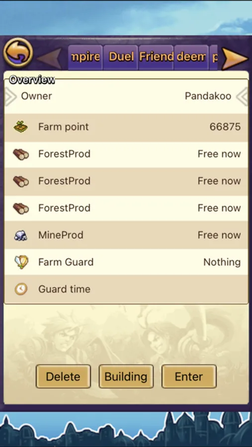 We have a very completed empire system which is not like any other game. You can build buildings to sell skills and equipments to other players and make profit from them and you can declare a war against other empires to raid them!