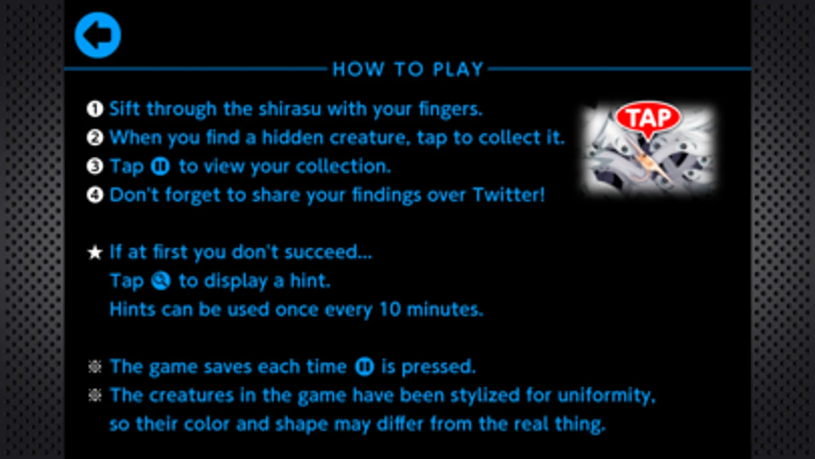 - Using your fingers, sift through the shirasu and look for mysterious creatures. Tap one to add it to your collection.