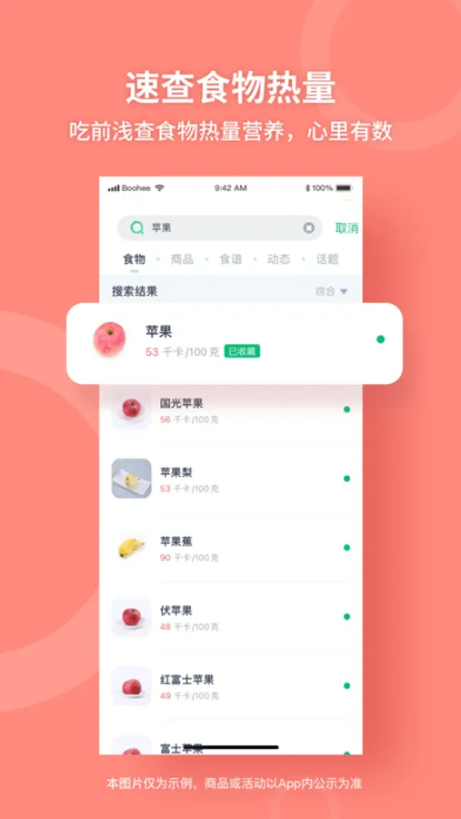 - 海量食物数据库,热量营养素一查便知