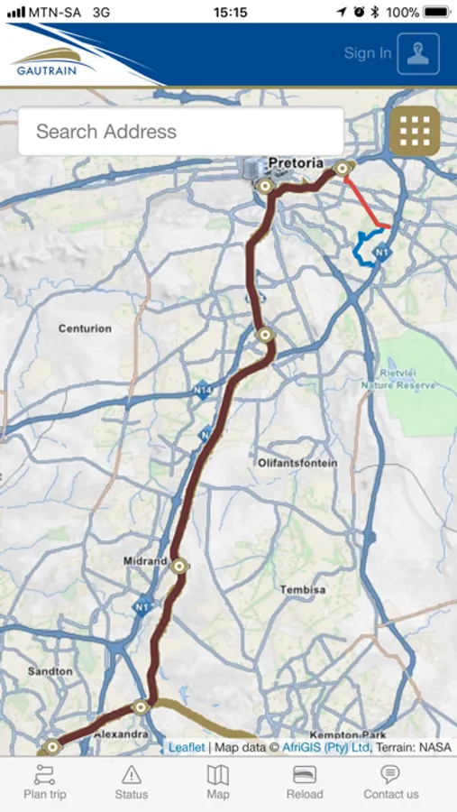 • real-time journey planning, station to station, or search for any address in Gauteng, with the option to add public transport operators in Gauteng to extend your journey options beyond the Gautrain network