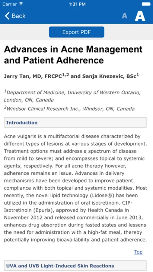 To answer this demand, Skin Therapy Letter Family Practice Edition has been offering its support to family physicians since 2005. The focus of this publication is to help educate and support primary care practitioners in the area of dermatology. The iPad/iPhone version of Skin Therapy Letter Family Practice Edition© provides medical professionals with instant access to all published articles. Powerful search functionality and intuitive navigation tools allow the user to find needed information quickly and with high degree of relevancy. The application is updated automatically to include recently published articles.