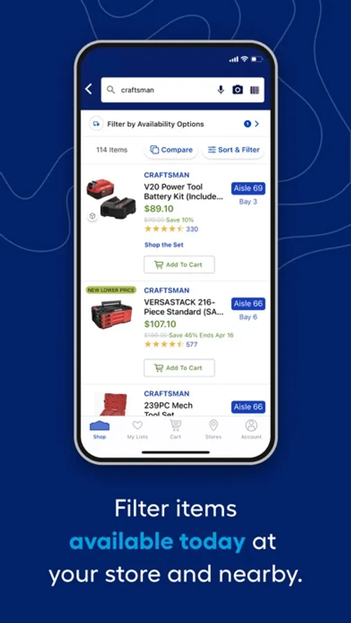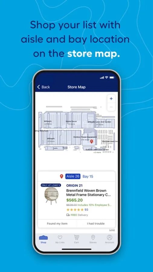 See aisle and shelf information right on the list page—so you know where to go in store. Plus, toggle with a switch to shop only at your preferred Lowe’s store.