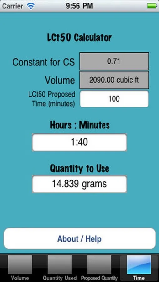 The app's easy-to-use forms require the user to enter the length, height and width of a structure, along with how much agent was used. If you want to determine the amount of the agent you can safely use in a building, the app will tell you the LCt50 after one simple numeric entry by the user. You can also determine how much agent to use for any LCt50 you want to establish.