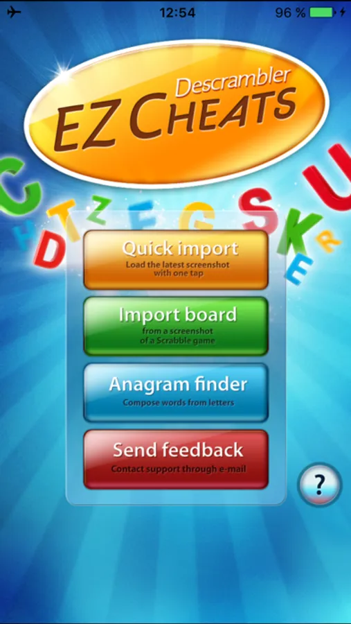 1 This app automatically reads the board and inputs the letters for you (from a screenshot of a Words with friends or Scrabble® game in progress). Or, if you’re playing scrabble® on a real board, you can just input the letters yourself and use the Anagram finder.