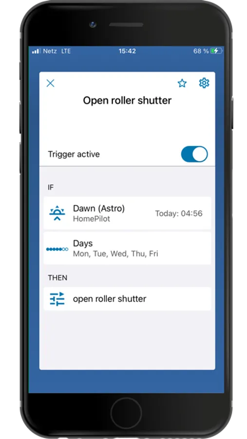 Another special feature of ours: "Triggers" can be created separately from a scene. If a previously defined trigger occurs - for example, if the temperature reaches a certain level or if the environmental sensor should respond to rain - it either activates an associated scene or just sends a push message for information without triggering an action.