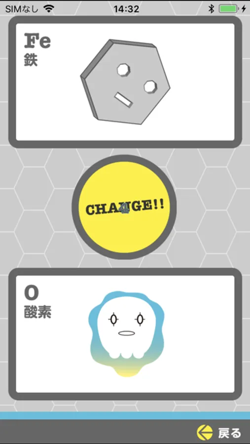 The iphone terminal is only shaken when the element character is changed with the "CHANGE" button, and a favorite character appears.