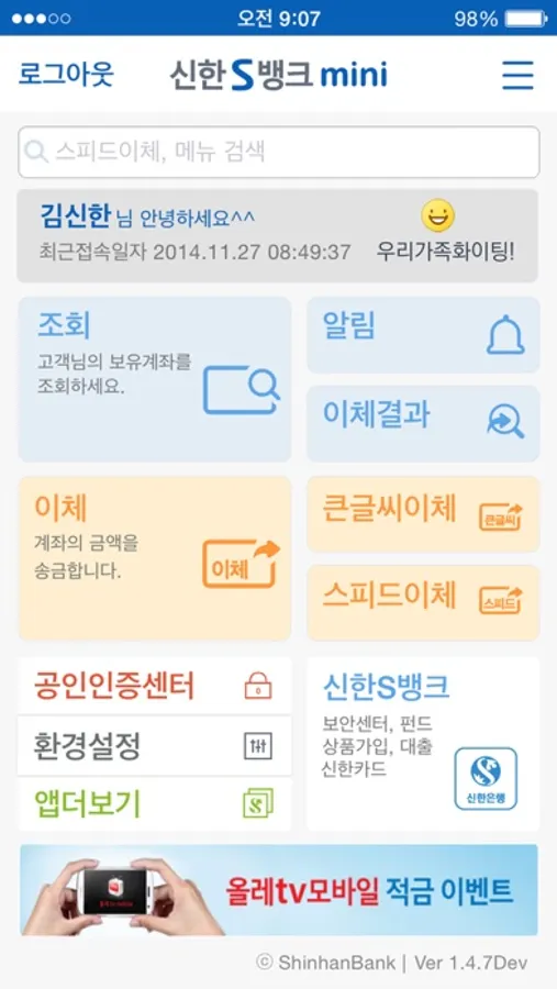 신한S뱅크mini의 새로운 변신!
