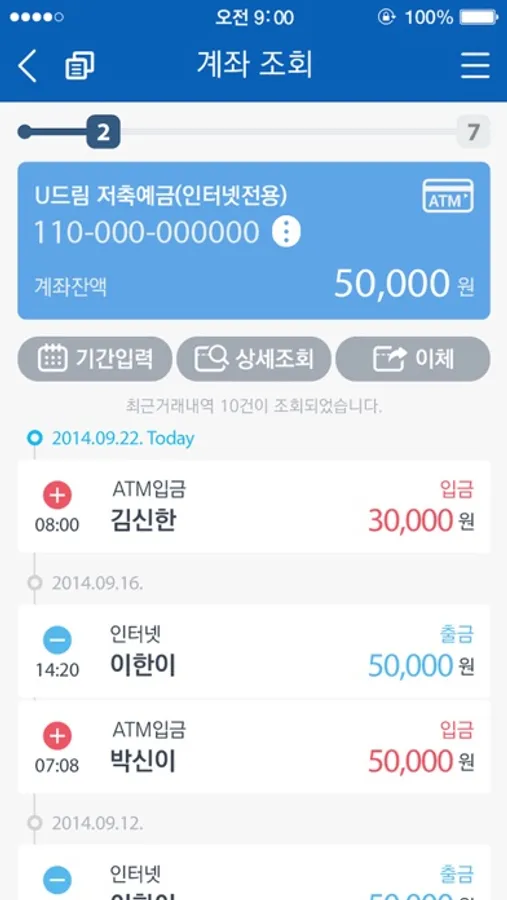 가장 많이 이용하시는 예금조회와 이체거래를 가장 편리하게 이용하실 수 있습니다.