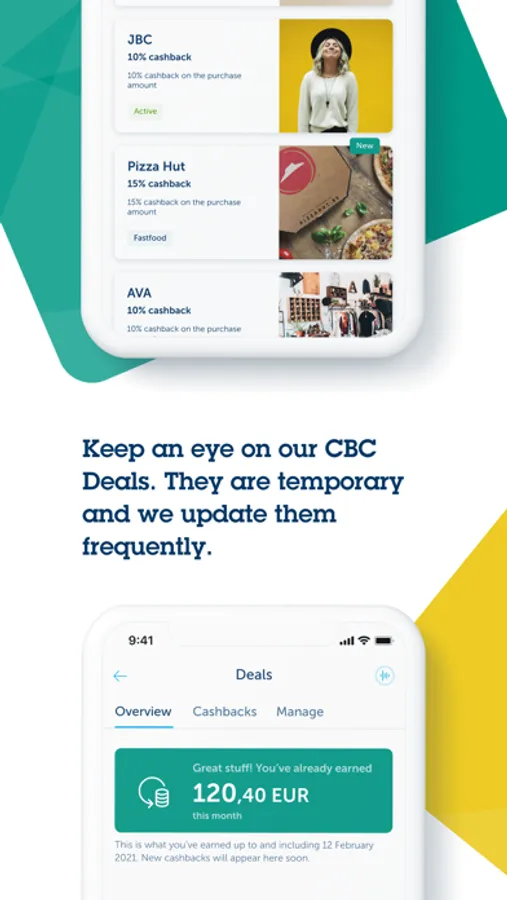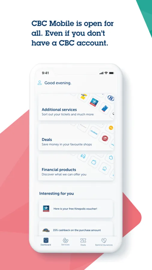 If you already have a current account with us, you can use our Mobile app to the full. That includes access to a host of handy additional services. For instance, you can rent a shared bike, buy cinema and theme park tickets, pay for parking, order service vouchers, and much more besides. CBC Deals is another great feature you won’t want to miss if you'd like to earn cashback rewards at lots of local and national partners.