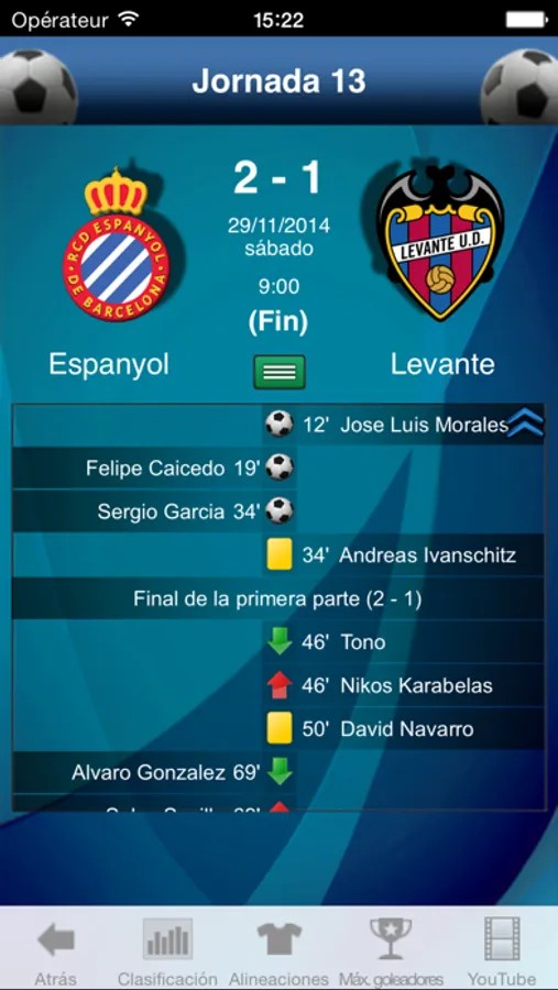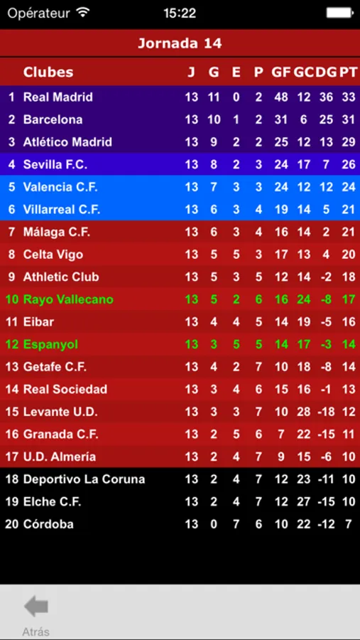 With La Liga Fútbol you can reach the match results and the standings of La Liga easily.