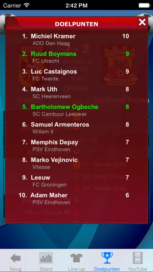 Via de toepassing kun je met ÈÈn enkele tik de uitslagen van voetbalwedstrijden en de doelpunten bekijken.