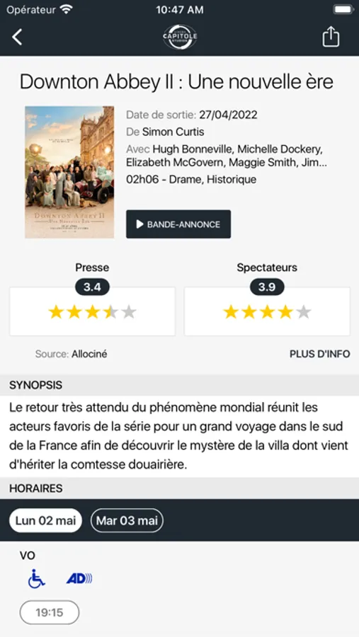 Retrouvez à chaque instant toute l’info de vos cinémas Capitole Studios et Capitole Centre sur votre iPhone ! Les films à l’affiche, les horaires des séances, les fiches films et les événements et infos pratiques de votre cinéma !