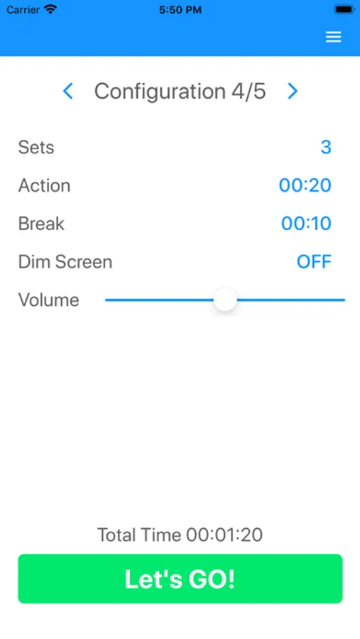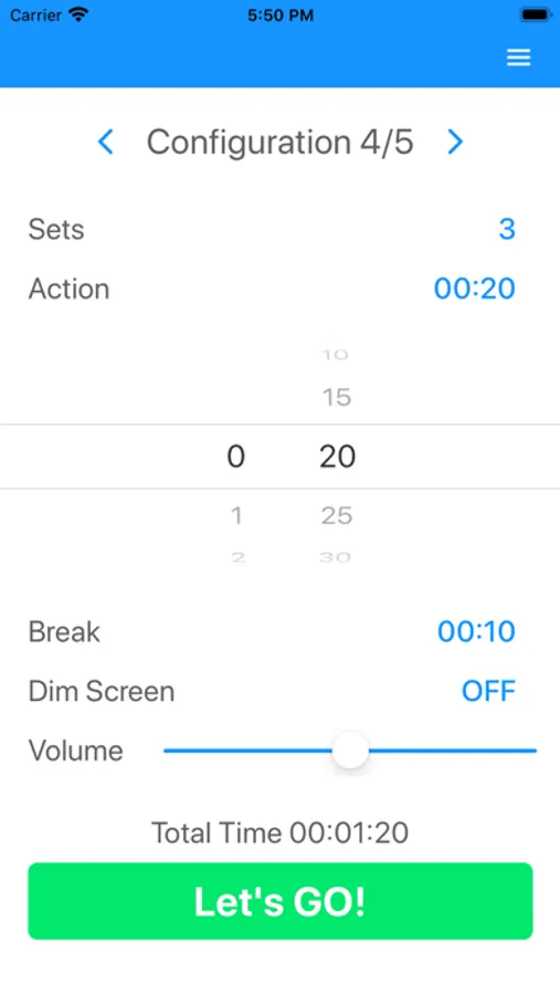 Adjust Number of Sets, Action and Break duration to your needs and you are ready to go!