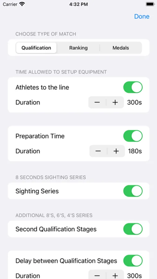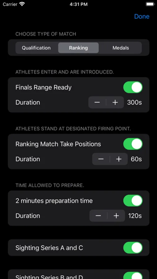 Select from Qualification, Ranking, Or Medals match to start taking part in your own competition.