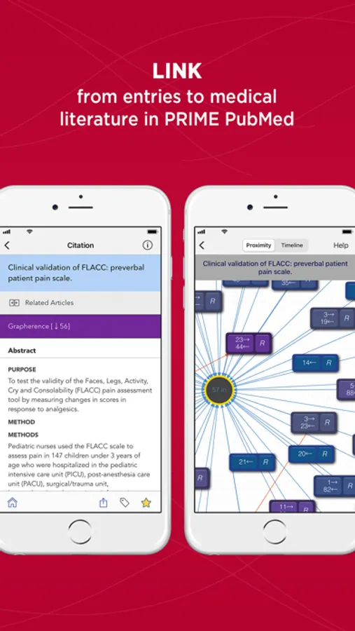 Quickly search journal articles from the full PubMed database on your smartphone and tablet. Results contain abstracts, citations, and links to available full text articles that can be read on device and shared with classmates and colleagues. Additionally, Prime contains Grapherence™, an exclusive way to visually explore interrelationships and relevance in the medical literature.