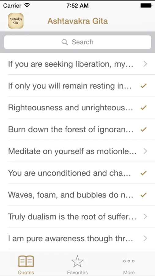 We have quotes apps of: Sri Ramana Maharshi, Nisargadatta Maharaj, Mooji, Annamalai Swami, Adi Shankaracharya, Swami Vivekananda, Yogananda, Ramakrishna, Anandamayi Ma, Swami Sivananda, Avadhuta Gita, Swami Prabhupada. Suggest us more if you have any idea!