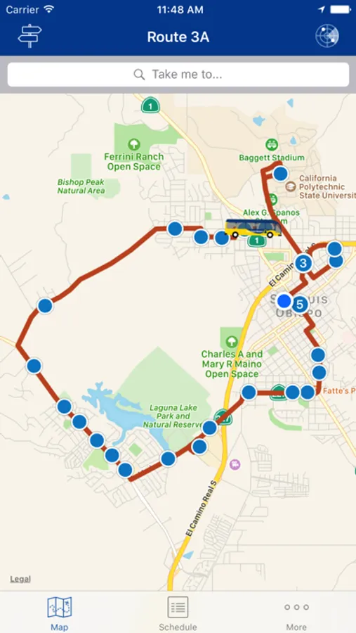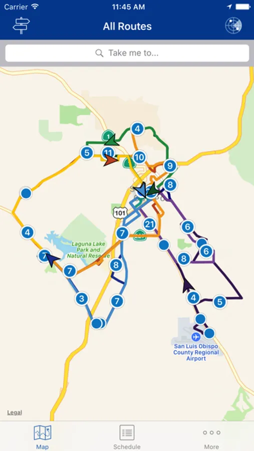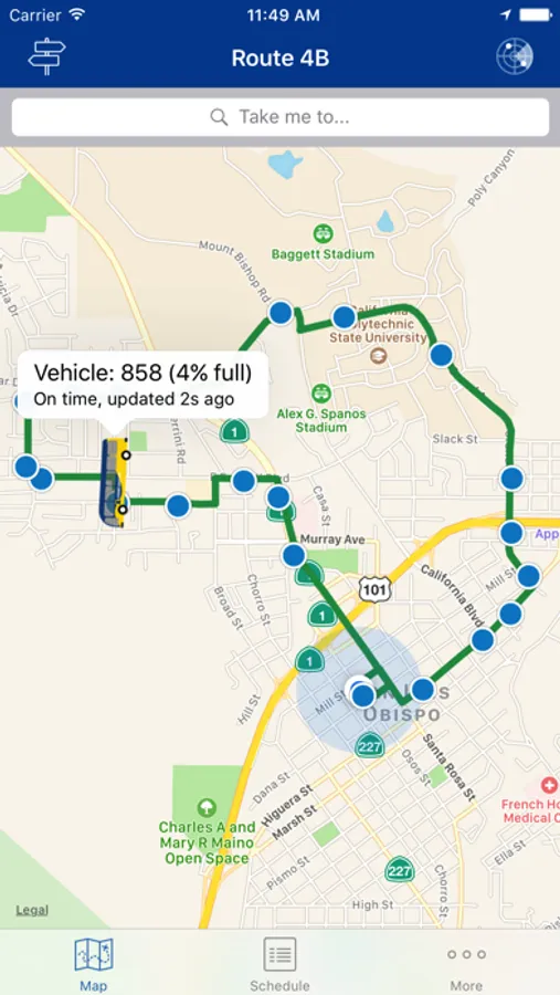 Bus route information for SLO Transit (not RTA, sorry!) This app displays real-time information for city buses with notifications and schedules.