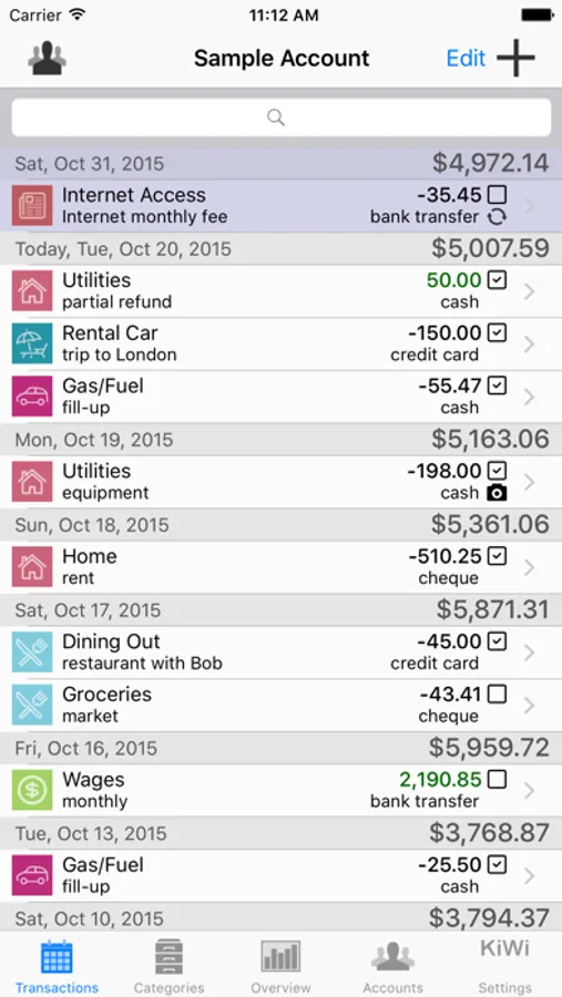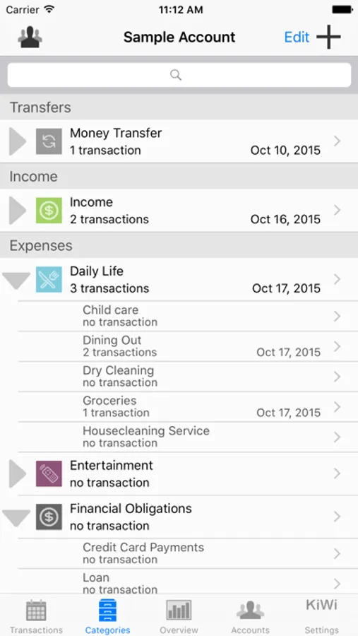 The application comes with an example account featuring a dozen transactions which will allow you to quickly become familiar with it.