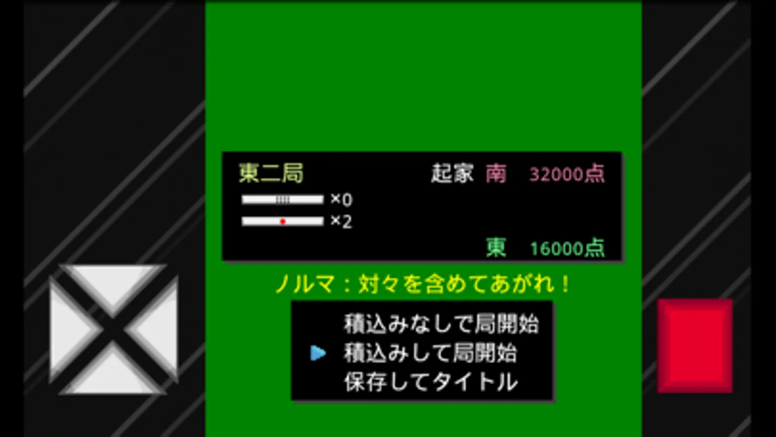 役満以上や3倍満以上、対々を含めることなどのノルマが課せられるので、そのノルマを満たして和了る必要のある麻雀です。積込みやツモの券が多く使えるので、それを活用してください。戦略性の高い麻雀になります。